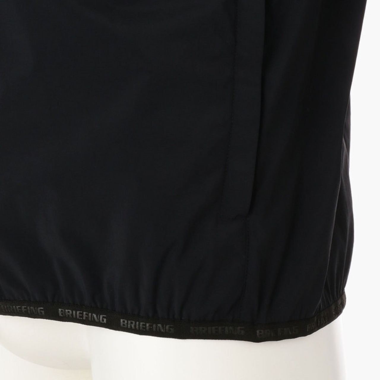 ・袖口、裾にあしらわれた、BRIEFINGのエンボスロゴ入りのパイピングテープ。